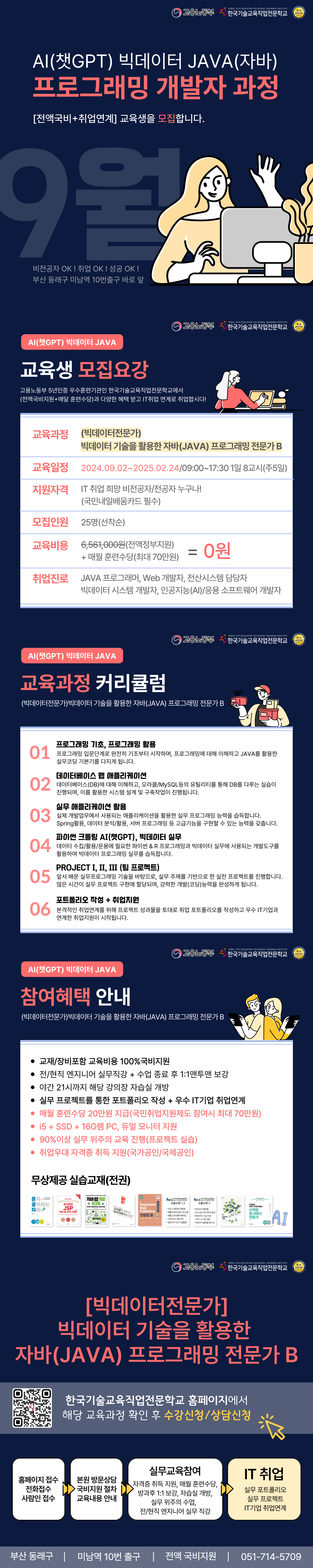 - 교육기간 : 24.08.26 ~ 25.02.21